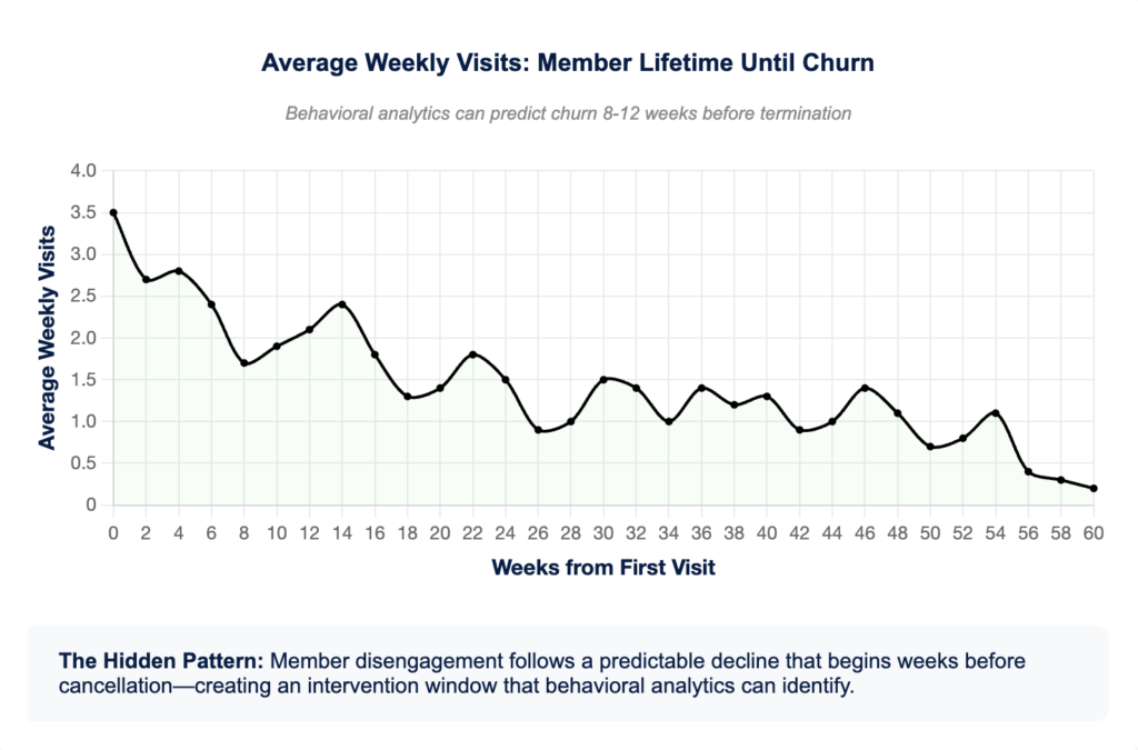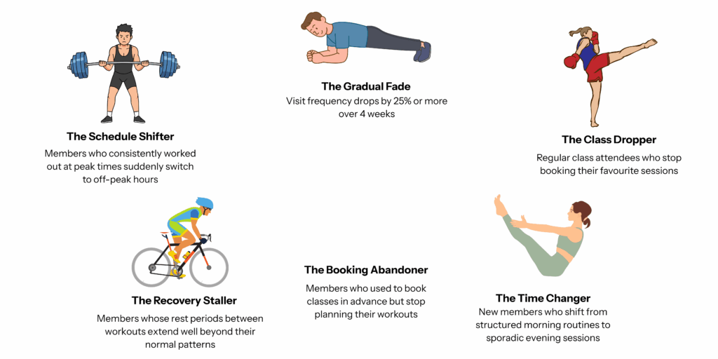 Habit Formation: Research shows that gym habits follow predictable formation cycles. Disruptions in these cycles are early warning signs that can be detected and addressed proactively.