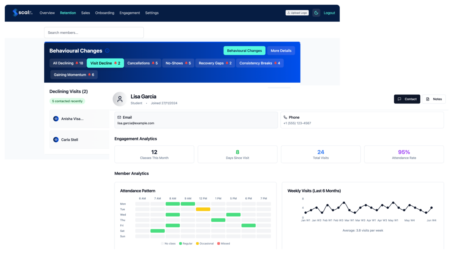 Scalr uses your CRM information, added notes from staff members, as well as external influences like seasonality to deliver your behavioural analytics.